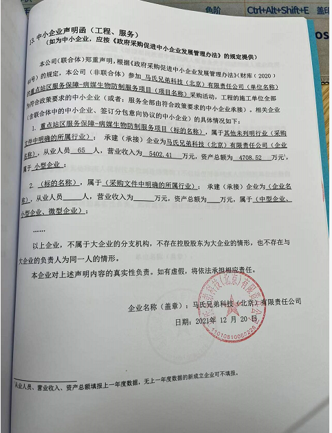 | 马氏兄弟科技(北京)有限责任公司 | 病媒生物防制服务 | / | 1 | 136万元 | 136万元 | / |